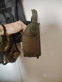 Comprende, gilet MOLLE, tasca utility mimetica originale dell'esercito italiano, fondina universale, guanti tan tattici senza dita e marsupio tattico.