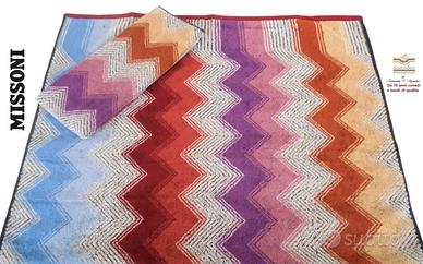 Completo composto da : 1 telo cm. 150 x 100 , 2 asciugamano cm. 115 x 70 , 2 ospiti cm. 70 x 40 , misure max . Spugna operata jacquard con lavorazione ricciolo 100% cotone . Prodotto nuovo , originale , di eccellente qualità e manifattura . Confezione in busta Missoni . Nelle foto abbiamo inserito le spiegazioni tecniche , per ulteriori info contattare la direzione . Prezzo di listino euro 320 , nostra offerta euro 209 .