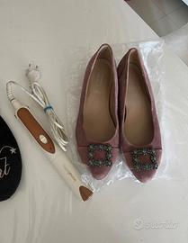 Set di vari articoli,borsa pochette doroty perkins,piastra per capelli funzionante ma bisogna metterla in un certo modo,marsupio nuovo con etichette ,ciabatte nuove da camera N.40/41 . Scarpe ballerine usate un paio di volte,in ottime condizioni,vendo tutto insieme o separatamente