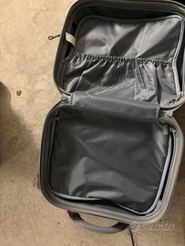 Vebdo set trolley e beautycase Camomilla nuovo , mai usato trolley : 50 cm altezza, 20 profondità, 30cm di larghezza. Grigio. Beautycase : 230larghezza, 15 profondità, 20cm altezza