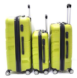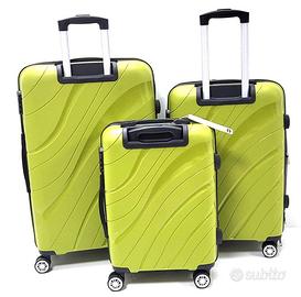 Splendido set costituito da tre trolley in nuovo materiale di ultima generazione in POLIIPROPILENE flessibile con trolley bagaglio cabina per voli low cost.