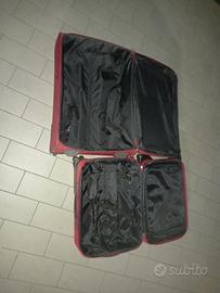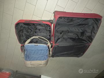 Set due trolley delsey + borsa cabin baggage : il trolley grande contiene il medio che a sua volta contiene la borsa da cabina. Molto utili quando per esempio per il viaggio di andata si trasporti meno merce che per il viaggio di ritorno e così risparmi spazio e spese di spedizione. Il trolley grande è dotato anche di doppia cerniera che ne permette estensione maggiore.