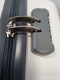 Il trolley è protetto da PELLICOLA PROTETTIVA. Eventuali segni o graffi sono sulla pellicola che deve essere rimossa per avere il trolley lucido come in foto. Per rimuovere la pellicola: grattare leggermente in un punto qualsiasi del trolley e questa si inizierà a sollevare.