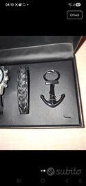Nuivo: orologio in acciaio, bracciale in cuoio, portachiavi in acciaio