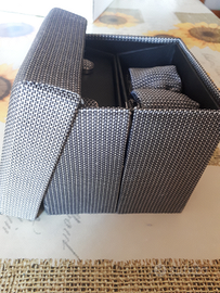 Set classico in seta 100% composto da cravatta, pochette e gemelli da polso in una bella scatola regalo. Nuovo
