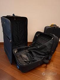 valigia grande, valigia porta abiti e trolley colore blu avio