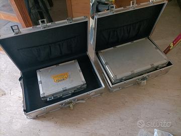 Vendo set completo di 7 valigie vintage rigide, di cui 2 grandi in alluminio, 1 media, 1 piccola e 2 piccole nere. Le valigie in alluminio sono robuste e ideali per trasporto attrezzi, lavoro, viaggio o uso scenografico/stile industriale. In buone condizioni.