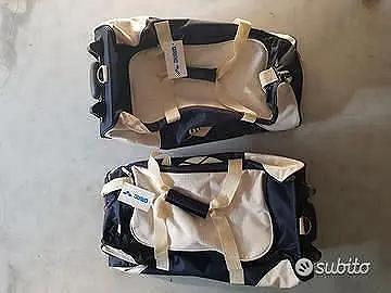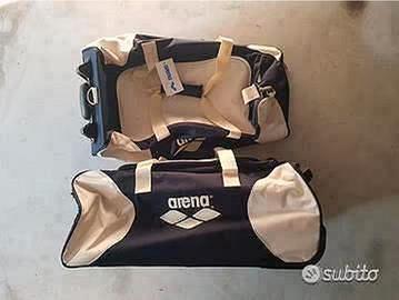 Un trolley borsone con manico telescopico richiudibili , due trolley valigia , una tracolla a postina, originali da viaggio , mai utilizzate. Valigia da viaggio borse trolley postina Arena Collezione completa, cedo solo in blocco. Possibile spedizione tracciabile o ritiro a mano. Non effettuo spedizione tramite tuttosubito. Prezzo riferito cadauna. Cortesemente astenersi perditempo Set Arena squadra nuoto ufficiale piscina sport
