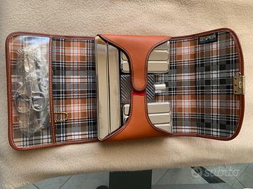 Set viaggio vintage da uomo , vera pelle , mai usato in confezione originale . Completo di forbicine , limetta , pettine e calzascarpe . Contenitori in plastica e metallo . Cm. 18 x 14 circa . Vendo come da foto . Made in Italy.
