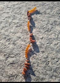 Bellissimo set vintage composto da bracciale e collana, con arneria dorata e perline color arancione. I brillantini e il modello particolare rendono questi gioielli un regalo davvero speciale. Ottime condizioni come da foto. Misure: bracciale cca. 18 cm, collana cca. 40. Non argento.