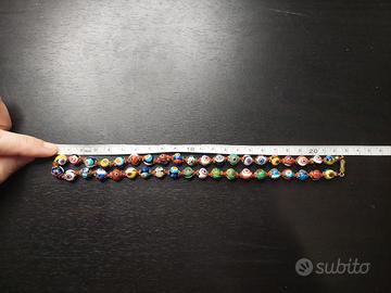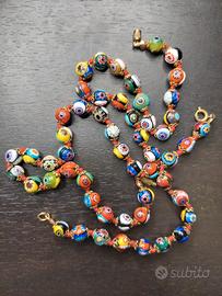 Set vintage collana + braccialetto con perle in vetro di Murano millefiori originale.