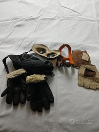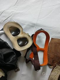 Per inutilizzo offro set d'accessori vintage per auto d'epoca scoperte, tipo Barchette, Silurini. Come visibile dalle foto, consiste in un caschetto in pelle, due paia di guanti, invernale foderato vero pelo di pecora, estivi, due paia d'occhiali giorno e notte. Tutto chiaramente vissuto ma ancora in ottime condizioni, è gradito il ritiro in loco per il controllo dello stato d'uso. Eventuale spedizione visto e piaciuto, no resi, va concordata a parte.