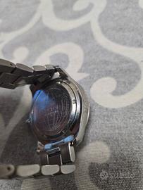 Orologio Sector, linea Adventure con alimentazione ad ENERGIA SOLARE. Orologio senza batteria e quindi non neccessità di assistenza per essa. 5 mesi di autonomia senza ricarica. Cassa acciaio con ghiera girevole e corona a vite, quadrante con disegno del planisfero. Resistente all'acqua fino a 100m. Diametro cassa 45mm.