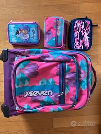 Come da foto, quattro pezzi totali in vendita, Trolley bellissimo con ruote, per la scuola ma ottimo anche se devi viaggiare con l’aereo, più astuccio originale abbinato per la scuola più altri due astucci uno Barbie e l’altro come da foto tutto originale Seven in ottime condizioni,