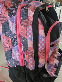 SEVEN - Zaino da scuola modello Extra Fit in fantasia patchwork nero e fuxia, con doppio scomparto più tasca esterna con cerniera. Dimensioni cm. 40x35x15 circa. Come nuovo