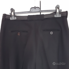 Panta palazzo in crêpe poliestere nero. Tessuto morbido. Segnalo che manca il bottoncino interno. Se ne trovo uno lo attacco. Per questo prezzo piccolo. Eventualmente chiedere le misure