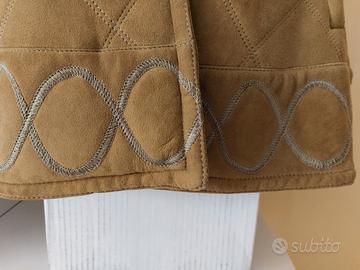 Shearling Belfe, tg. 46, modello a cappa, interno agnello, bottoni gioiello. Interamente trapuntato, bordo ricamato a motivi. Ampia vestibilità, ottime condizioni.