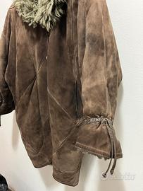 Shearling originale in vera pelle scamosciata con interno in vera pelliccia naturale, capo caldo e strutturato, stile vintage.