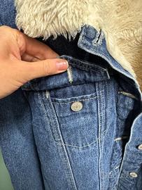Classic denim jacket with a warm cream sherpa lining inside and on the collar. Button-up front, chest flap pockets and side pockets. ✅open to a price discussion Comfortable, cozy and perfect for autumn/winter layering.