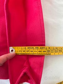 Vendo shopper bag pieghevole, grande e resistente. Colore fucsia, busta a righe colorate con disegni bianchi.