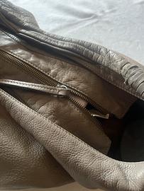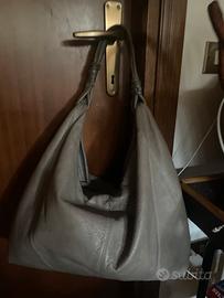 Shopper bag in pelle morbidissima griga con doppia tracolla molto originale.