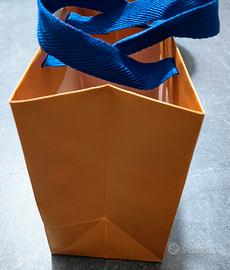 shopper/borsa di carta Louis Vuitton con manici di stoffa colore azzurro, misura 22x18x11,5 cm.