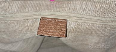 Shopper Gucci Tote Bree in vitello e monogram. Interno in iuta con codici a vista. Misura medium Ci sono solo alcune pieghe laterali dovute alla conformità della borsa.