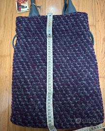 Shopper Lana Unique, marchio italiano artigianale di borse. Shopper in lana bottonata, tessuto di aziende italiane di Como. Misure in foto. Tasca interna. Nuova con cartellino. 2 Sciarpine di chiusura della borda intercambiabili che possono essere usate come sciarpe (vedasi foto)+ dustbag inclusa