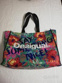 Coloratissima e grande shopping bag della Desigual. Ideale per contenere e trasportare i vestiti. In perfette condizioni, nuova, mai utilizzata.