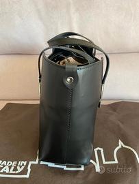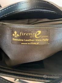 Borsa con 2 manici, tracolla amovibile, tasca interna con cerniera, tasca con cerniera sul retro, chiusura con cerniera. Made in Italy, Marca Firenze Artegiani. Composizione in pelle, fodera in tessuto. Dimensioni 37x10x27. Completa con propria sacca custodia. Nuova mai usata.