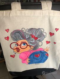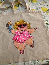 Curvy shopping tote bag. Tutte dipinte a mano uniche , spiritose e personalizzabili.