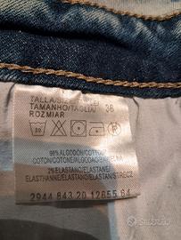 short in denim in stile Y2K taglia 36, con effetto sbiadito e dettagli distintivi come i grossi occhielli metallici sui lati ed orlo sfrangiato.