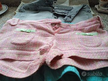 4 short di cui: uno in tessuto jeans colore grigio marca LEE taglia L uno in cotone bianco taglia L uno in cotone verde con fusciacca a pois taglia 44 uno in cotone rosa taglia 44