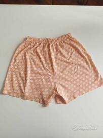 Vendo short pantaloncino del pigiama brand Made in Italy in cotone elasticizzato, morbido e liscio, fresco e leggero, perfetto per questa stagione, la primavera e l'estate. Taglia XS, come nuovo perché indossato solo una volta. Colore arancione albicocca con disegnati piccoli fiorellini bianchi (margherite).