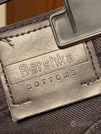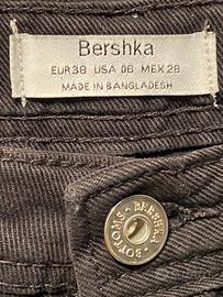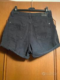 Shorts neri in jeans Bershka, taglia 42. Tasche sul retro e sul davanti, chiusura con bottoni. Risvolti sul fondo.