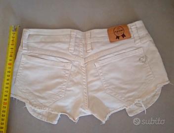 Pantaloncini corti in jeans. Marca Please, taglia XXS, colore sabbia. Modello molto corto e vita bassa.