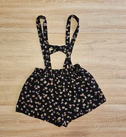 Shorts donna con bretelle Forever 21. Modello floreale su base nera, il dettaglio delle bretelle incrociate dietro e regolabili con bottoni lo rende adatto a tutte le occasioni. Presenta due tasche sulla parte anteriore. Non presenta difetti. Materiale super leggero perfetto perl'estate.