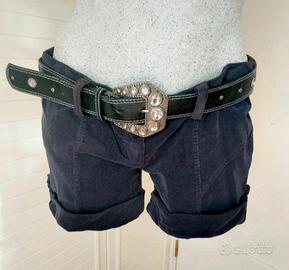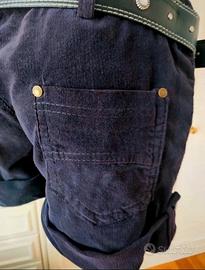 Shorts in velluto a coste viola elasticizzati, risvolto sull'orl