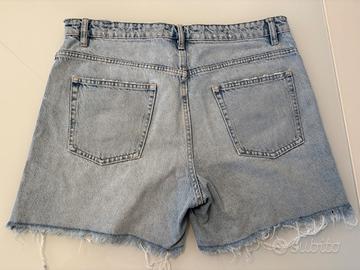 Vendo pantaloncini/shorts jeans donna Zara, celeste chiaro, taglia italiana 48. Con 5 tasche, sfrangiato. Usato. Ritiro a Roma in zona Conca d’Oro. No resi, no perditempo.