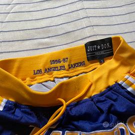 Pantaloncini NBA Los Angeles Lakers by Just Don, taglia S, nuovi mai usati, in condizioni perfette. Stile basket vintage con colori classici giallo e viola, logo Lakers ricamato, ispirati alla stagione NBA 1996-97. Ideali per amanti di streetwear, hip hop e moda sportiva.