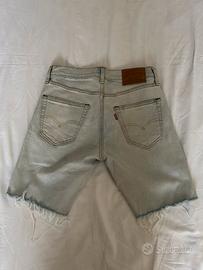 Shorts Levi’s Premium da uomo, in denim chiaro effetto slavato, taglia W29. Modello a taglio vivo con fondo sfrangiato, stile casual e vintage. Patch Levi’s originale sul retro e logo rosso sulla tasca.