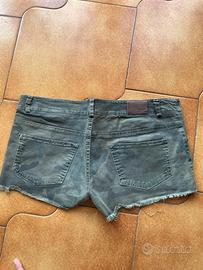 Colore verde militare con leggero effetto camouflage, modello con tasche frontali e posteriori, orlo sfrangiato per un look casual. Perfetti per l’estate e il tempo libero.