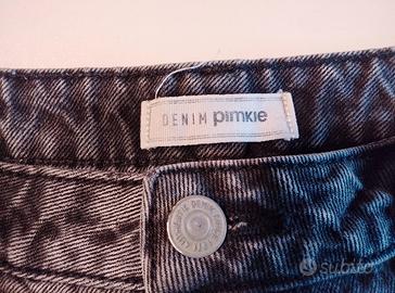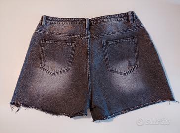 Vendo shorts in denim, in ottime condizioni. Modello a vita alta, lunghezza media, con orlo sfilacciato (taglio vivo), perfetto per un look casual estivo o primaverile. Hanno un leggero effetto distressed (piccoli strappi/abrasioni, vedi foto).