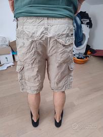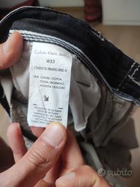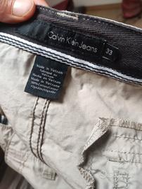 Shorts uomo firmati Calvin Klein Jeans, colore beige chiaro, taglia L (33). Sono in buone condizioni,. Tasche laterali con patta. - Chiusura con bottone e zip. - Passanti per cintura. Indossato da uomo 1.84 76kg