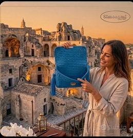 Ciao a tutti! Mi chiamo Simona e nel tempo libero amo dedicarmi alla mia passione: l'uncinetto. Oggi voglio presentarvi una delle mie ultime fatiche, una borsa a cui sono molto legata, nata tra i vicoli incantati di Matera. Immaginate il calore del tramonto che illumina i Sassi, l’atmosfera magica della Murgia e la tranquillità necessaria per intrecciare con cura ogni singolo nodo. Questa borsa non è solo un accessorio, ma un pezzetto di quella magia lucana che porto con me nel mio hobby. Dettagli del pezzo unico: Colore: Un blu vibrante e profondo, perfetto per dare carattere a un outfit neutro (come quello che indosso in foto!). Lavorazione: Realizzata interamente a mano con tecnica crochet. È robusta, strutturata e curata nei minimi dettagli. Accessori: Chiusura metallica sicura a scatto e un elegante nappina laterale coordinata. Misure: * Larghezza: 28 cm Altezza (senza manico): 18 cm Profondità: 8 cm È la compagna ideale per una passeggiata o una serata speciale. Essendo un prodotto artigianale, non ne troverete un'altra identica: ogni piccola imperfezione è il segno del "fatto a mano" con amore. Spero che questa borsa possa regalare a chi la indosserà le stesse belle vibrazioni che ho provato io creandola immersa nella bellezza dei Sassi. Se avete domande o volete altre foto, scrivetemi pure in privato!