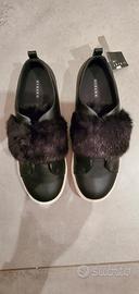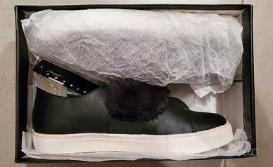 Sneaker basic girl in similpelle liscia, con pellicciasulla linguetta.