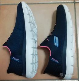 Scarpe Skechers Slips-ins Air Cooled Memory Foam. Modello da donna n° 41 di colore blu e rosa. Molto facili da indossare, senza lacci ma con elastici che mantengono bene il piede all'interno. La comodità è garantita dal memory foam. Ottimo stato di conservazione, usate pochissimo. Vendo causa inutilizzo e incompatibilità con l'uso dei miei plantari ortopedici. Vendo a Euro 40,00.