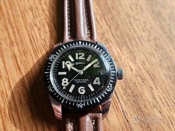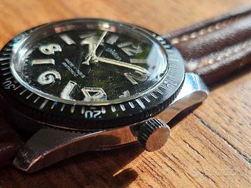 Vendo per inutilizzo Skin Diver marchiato Gallion, ghiera bachelite perfetta, dial perfetto dal tono molto caldo. Stile Sous Marine e Glashütte SeaQ Movimento manuale. Cassa 35mm ma ghiera 36mm