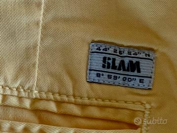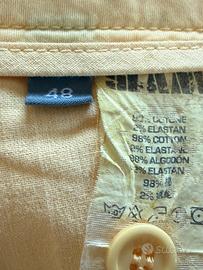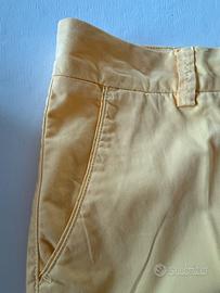 Bermuda taglia 48 colore giallo sorbetto - perfetto per risaltare l’abbronzatura . La composizione del tessuto (98%cotone, 2% elastan) li rende comodi adattandosi al corpo senza stringere. Chiusura a zip , bottone con logo , e gancetti di sicurezza interni. Il capo e’ tenuto con estrema cura, tessuto integro , colore ancora vivace, come da foto