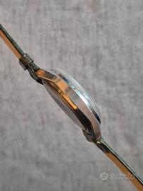 🇷🇺 Slava "50° Vittoria" - Movimento 2428 - Edizione Commemorativa Raro orologio Slava (Cлава) celebrativo del 50° anniversario della Vittoria (1945-1995), prodotto dalla Seconda Fabbrica di Orologi di Mosca. Sul quadrante è raffigurato il celebre monumento del "Guerriero Liberatore" di Berlino, un'icona della storia militare. * Calibro a carica manuale Slava 2428 a 26 rubini. Un movimento d'eccellenza unico nel panorama russo, dotato di due bariletti di carica che lavorano in parallelo per una maggiore precisione e stabilità. * Funzione Day-Date (giorno e data) con indicazione del giorno in inglese. * Rimessa Rapida: Comodo pulsante a ore 2 per il cambio rapido della data del mese * La lunetta zigrinata (fluted bezel) incornicia il quadrante bianco panna, donando all'orologio un tocco di raffinatezza e splendidi riflessi di luce. * Cinturino: Monta un cinturino nuovo in vera pelle con stampa coccodrillo verde, scelto appositamente per riprendere i toni della stampa celebrativa sul quadrante e creare un contrasto elegante con la cassa cromata. 📐 Dimensioni * Larghezza: 38 mm (esclusa corona). * Lug to lug: 44 mm. * Spessore: 11 mm. * Ansa: 18 mm. L'orologio è perfettamente funzionante. Il vetro plexiglass è in ottime condizioni e la cassa mantiene la sua brillantezza originale. Un pezzo di storia russa del 1995, ideale per chi cerca un orologio militare con uno stile più formale ed elegante. #vintage #watch #slava #pobeda #victory #sovietwatch #russia #manualwind #mechanicalwatch #2428 #26jewels #ww2 #commemorative #collectible #militarywatch #orologiovintage #russland #horology #1995 #flutedbezel